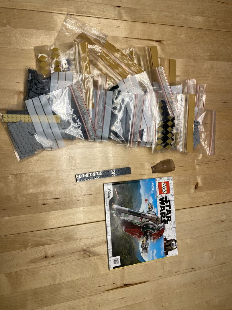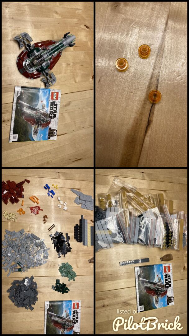 LEGO Star Wars 75312 - Boba Fett's Starship™ - Without minifigures Three parts are missing See picture the three small orange pieces. No guarantee